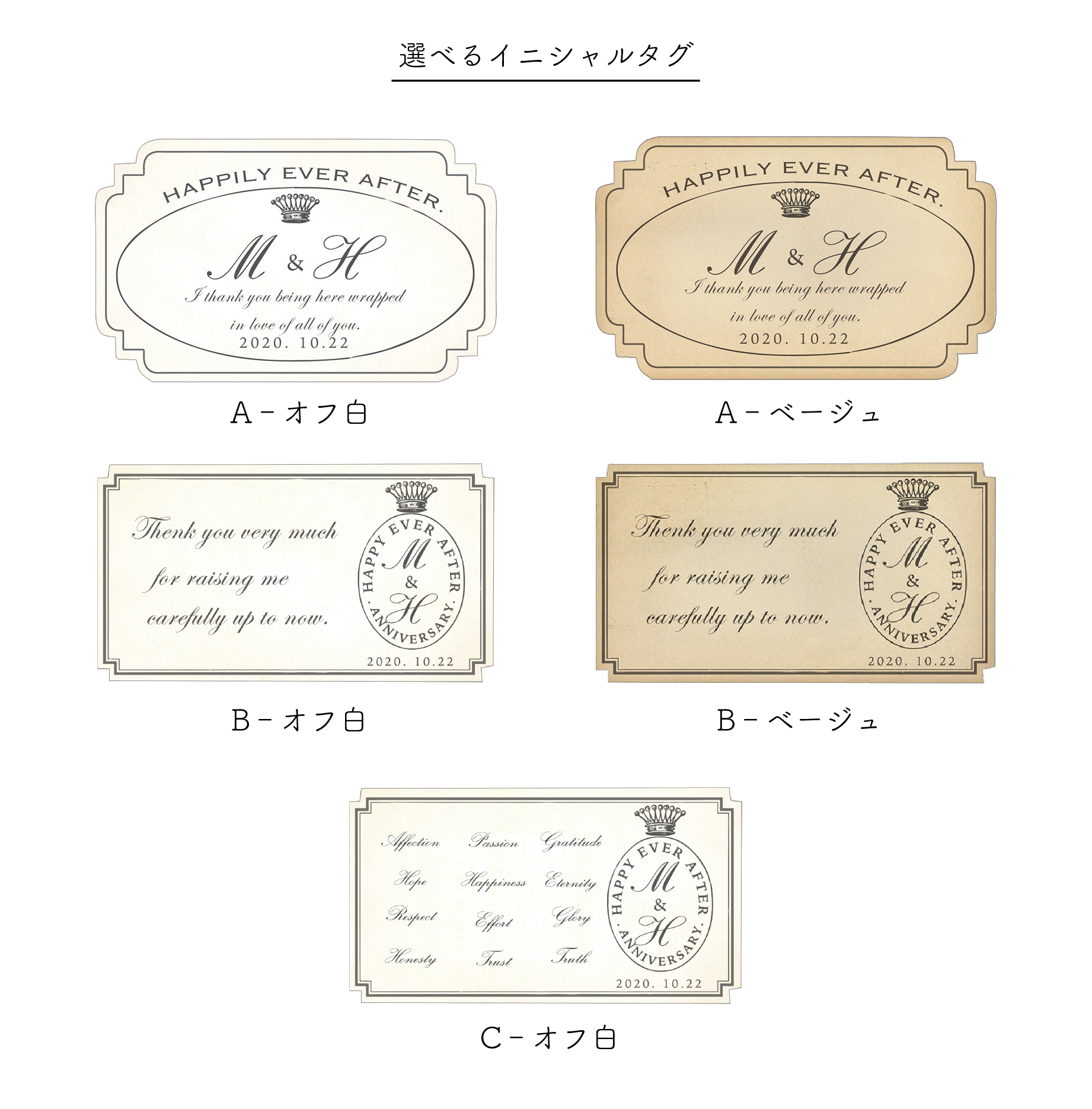 Cタイプ(オフ白のみ):「(ダズンローズ12本のバラに込められた言葉)」